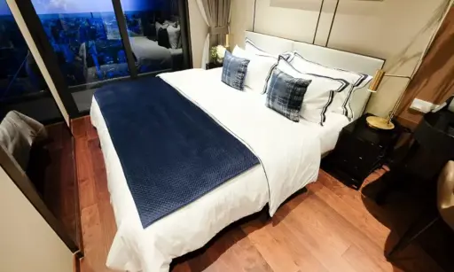 One Bedroom, One Bath – Perfect for City LivingThis 41 sqm condo feels thoughtfully designed, especially if you prefer an open, airy space that’s easy to maintain. The living area, with its contemporary vibe, features a comfortable white sofa facing a wall-mounted TV, while the large floor-to-ceiling windows flood the room with natural light and offer nice views.Kitchen That Makes Cooking EnjoyableThe kitchen is surprisingly well-equipped and stylish—a real highlight here. Dark wood cabinets paired with white quartz countertops give it a sleek look, and you’ll find built-in appliances like a stovetop and microwave. The under-cabinet lighting and pendant lights above the breakfast bar add a subtle, cozy touch. Plus, there’s seating for two on leather-upholstered chairs, so it’s just the right size for casual meals or coffee breaks.Rest and RelaxThe bedroom fits a king-size bed comfortably and features a walk-in shower that feels modern and airy. The overall neutral, light flooring keeps things bright and helps the space feel bigger than it is. Built-in shelving and decorative touches like artwork and a wooden accent wall add character without clutter.With freehold ownership and being off-plan, this place could be an excellent investment or a stylish home base in the lively Khlong Toei Nuea area.