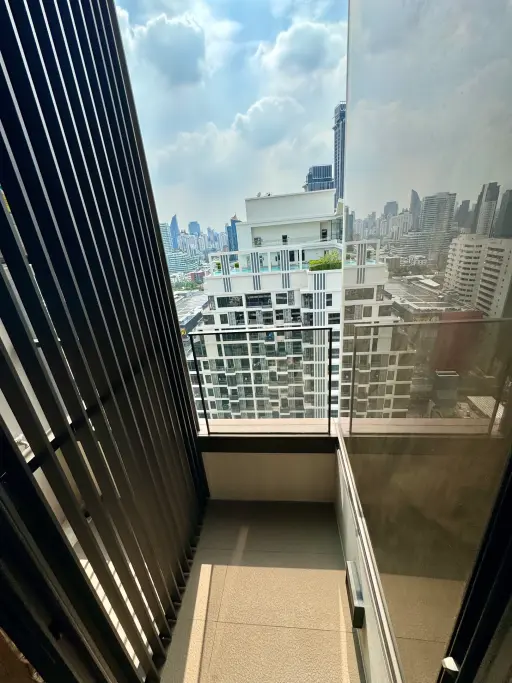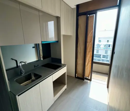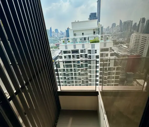 Practical and Bright 1-Bedroom LayoutThis 35 sqm condo in Khlong Tan Nuea feels surprisingly spacious thanks to an open layout and large windows that flood the space with natural light. The neutral walls and wooden laminate flooring give it a fresh, modern vibe, while built-in storage and a mirrored wardrobe help keep clutter at bay.Kitchen and Living SpaceThe kitchen is compact but well thought out, with light wood cabinets, a sleek black countertop, and an integrated sink with a modern faucet. There’s even an electric cooktop, so you can easily prepare meals without taking up much space.Comfort and ConvenienceWall-mounted air conditioner keeps the place cool.Sliding glass doors open onto a small balcony—perfect for a bit of fresh air and city views.Balcony features a glass railing with privacy slats, tiled floor, and overlooks the vibrant urban landscape.The bedroom has a wooden bed frame and headboard, and the en-suite bathroom includes a glass-enclosed shower with sliding door and a modern rectangular sink—clean and functional.Living here means access to rooftop amenities and being part of a modern high-rise with multiple balconies, bringing a real sense of city living. For someone wanting a well-designed, low-maintenance space with that urban feel, this place is worth checking out.