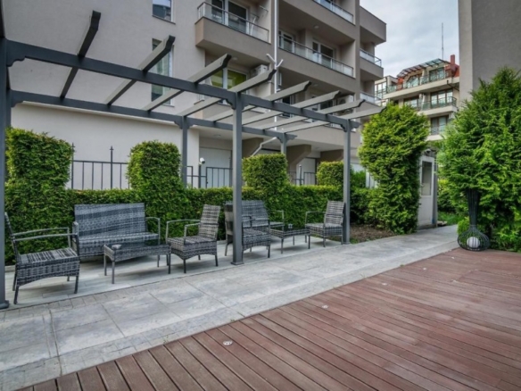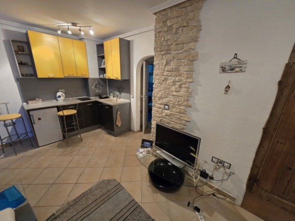 1 BED cozy apartment, 37 sq.m., in Night Breeze, Sarafovo, Burgas We offer for sale a compact one-bedroom apartment in a residential complex in Night Breeze in the city of Burgas, Sarafovo district. Distance from the beach: 200 meters. The apartment has an area of 37 m2, located on the ground floor. The building is put into operation – ACT 16, utility tariffs, separate lots. Layout: entrance hall, bathroom/WC with shower cabin, living room with kitchenette and dining room, small bedroom, veranda. The apartment is sold furnished with furniture and equipped with appliances. Annual maintenance fee: 222 euros