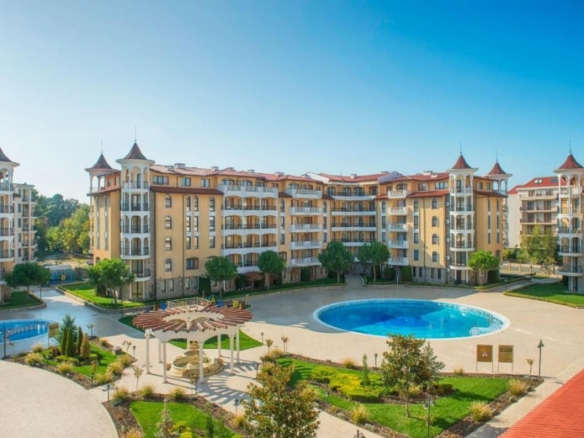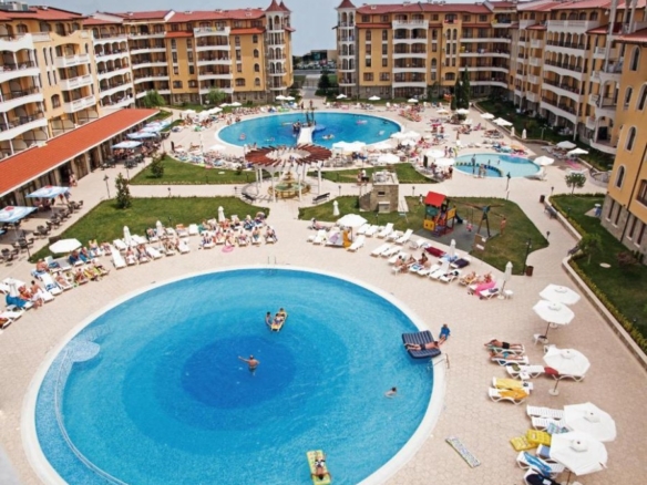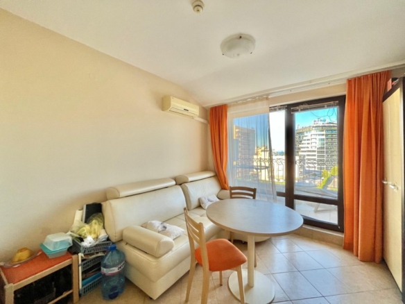1 BED SEA VIEW apartment , 49 sq.m., in Royal Sun (Sunny Beach, Bulgaria) KC Properties is pleased to offer you this fully furnished 1 BED apartment situated in the sought after Royal Sun apart-complex in Sunny beach resort. The property is situated on the 6th – top floor and has a total living area – 49 sq.m. It comprises of: – Hallway; – Spacious kitchen with living-room; – 1 bedroom; – Bathroom/toilet; – Balcony with views to the sea. The property is fully furnished and ready to use. It is excellent investment opportunity and is suitable for renting out! Royal Sun is an elite gated complex with controlled access, located near the center of Sunny Beach resort, not far from a large park of old coniferous trees. It is placed 300 m from a golden sandy beach that is only 6-7 minutes’ walk away. The complex was completed in July 2008 and consists of 539 fully furnished and equipped apartments. The holiday homes are divided into several sections, each with six floors and have an area in the range of 45 sq.m up to 100 sq.m. Royal Sun complex offers a wide range of services and facilities: * 24-hour reception and accommodation of guests * Lobby bar * Restaurant * Spacious garden * Two large swimming pools and a childrens pool area of over 1000 sq.m. * SPA center – massage rooms, Jacuzzi, sauna, solarium, medical center * Fitness center * Beauty salon * Treatment center with doctor and dentist * Childrens center and childrens playground * Shopping Centre * Year-round security and maintenance * Parking Annual maintenance fee – 16 EUR/sq.m.