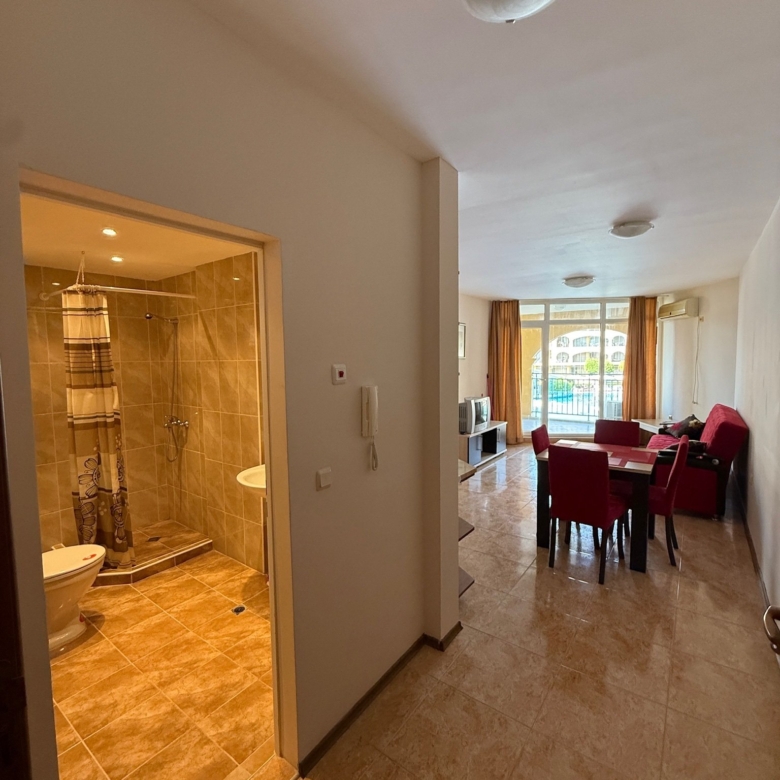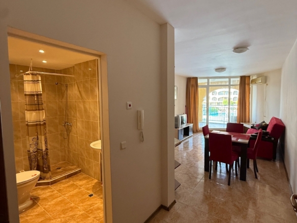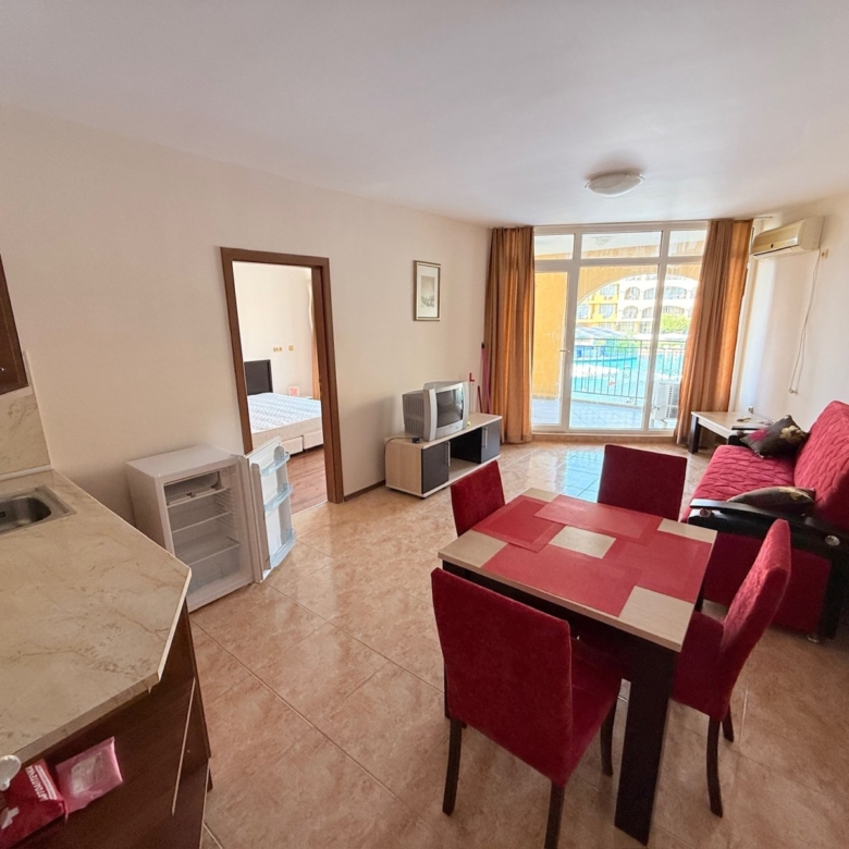 For sale is a cozy two-room apartment located within the well-maintained Midia residential complex in the peaceful coastal town of Aheloy.