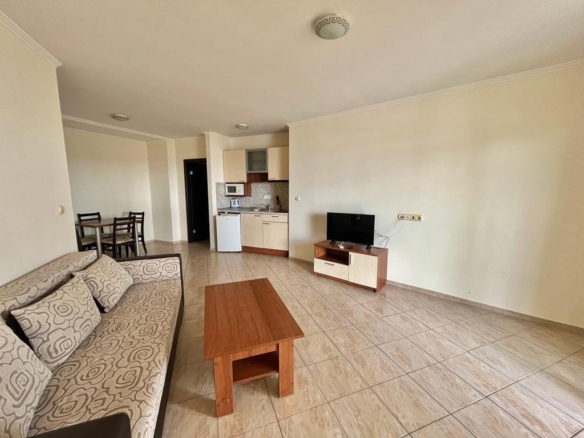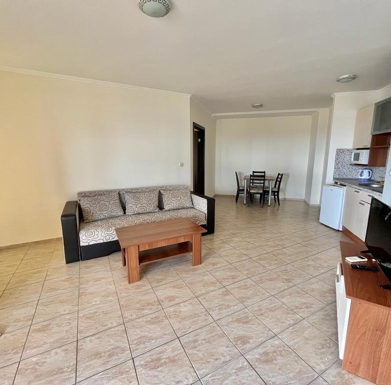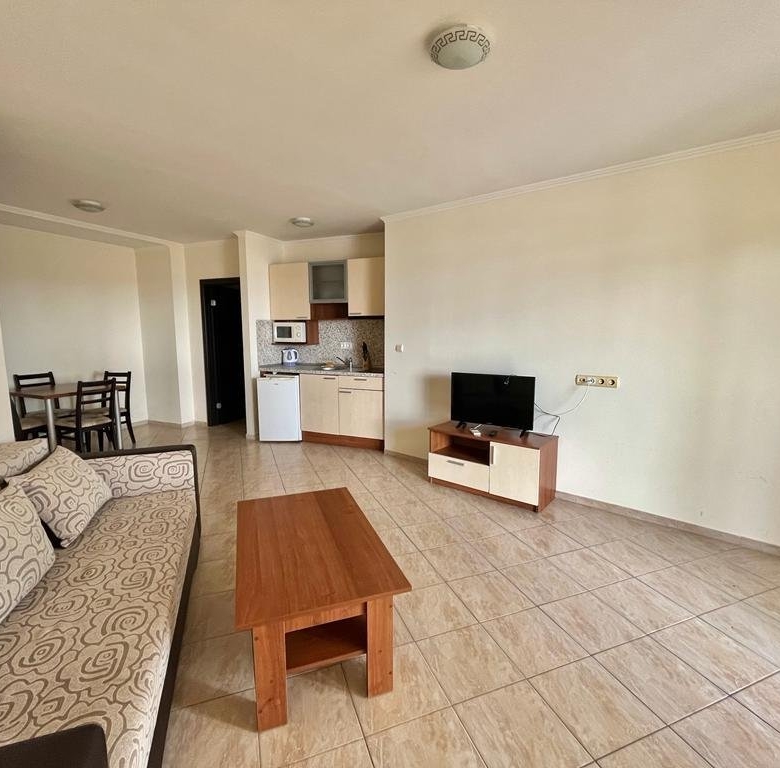 This spacious 2-room apartment in the popular resort of Elenite, Bulgaria, is located in the exclusive “Andalusia” complex directly on the beach.