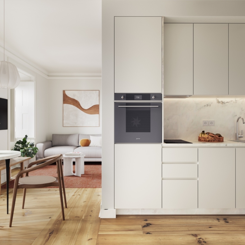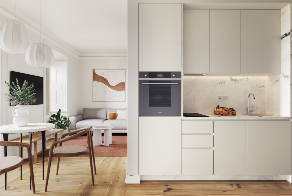 1 Bedroom apartment, new, with 54 sqm (gross floor area), at the Rocio Salema Courtyard project, in Praça do Rossio, Lisbon. The Rocio – Salema Courtyard, a building comprising 36 studio, 1-bedroom, 1-bedroom duplex and 2-bedroom duplex apartments, is located next to one of the most iconic squares in Lisbon, Praça do Rossio.This corner of Lisbon that marvels people from all over the world represents in a perfect manner the intersection between heritage and modernity, which results in a picturesque and welcoming space in the centre of the hustle and bustle of the city. Despite being a rehabilitated building, the Rocio – Salema Courtyard has kept its typical Lisbon structure and the original three storeys, overlooking the river. The Rocio is the ideal address for those wanting to live or invest in one of the most vibrant cities due to the constant tourism growth. The development is near important monuments of the metropolis, such as the statue of D. Pedro IV, the Teatro D. Maria II and the Coliseu dos Recreios. Next to Praça do Rossio, the building has a privileged location in terms of transport, at a short distance from the underground, bus and the Rossio train station. This is the perfect opportunity for those wanting to be where the action is while having a luxurious haven to call home.