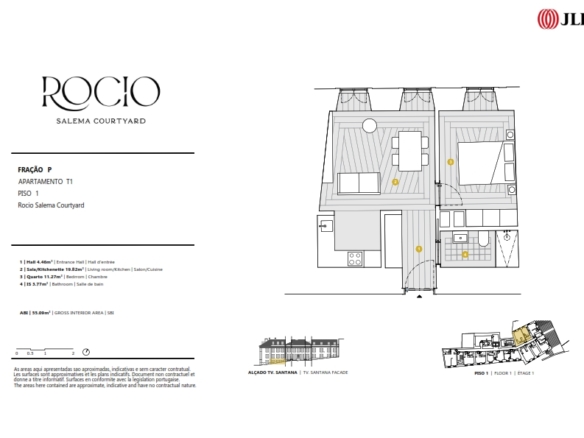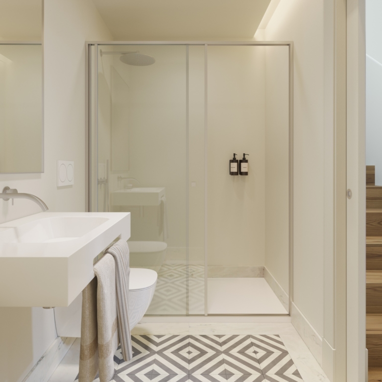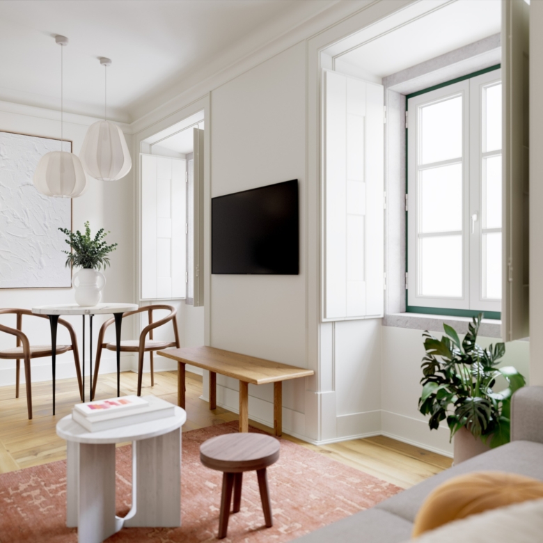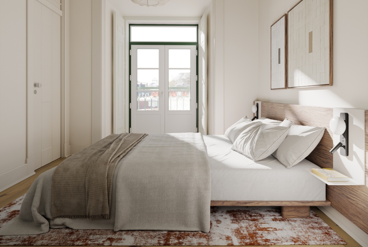 1 Bedroom apartment, new, with 55 sqm (gross floor area), at the Rocio Salema Courtyard project, in Praça do Rossio, Lisbon. The Rocio – Salema Courtyard, a building comprising 36 studio, 1-bedroom, 1-bedroom duplex and 2-bedroom duplex apartments, is located next to one of the most iconic squares in Lisbon, Praça do Rossio.This corner of Lisbon that marvels people from all over the world represents in a perfect manner the intersection between heritage and modernity, which results in a picturesque and welcoming space in the centre of the hustle and bustle of the city. Despite being a rehabilitated building, the Rocio – Salema Courtyard has kept its typical Lisbon structure and the original three storeys, overlooking the river. The Rocio is the ideal address for those wanting to live or invest in one of the most vibrant cities due to the constant tourism growth. The development is near important monuments of the metropolis, such as the statue of D. Pedro IV, the Teatro D. Maria II and the Coliseu dos Recreios. Next to Praça do Rossio, the building has a privileged location in terms of transport, at a short distance from the underground, bus and the Rossio train station. This is the perfect opportunity for those wanting to be where the action is while having a luxurious haven to call home.