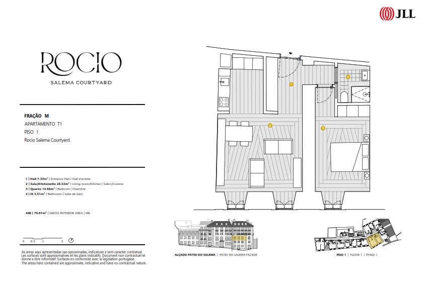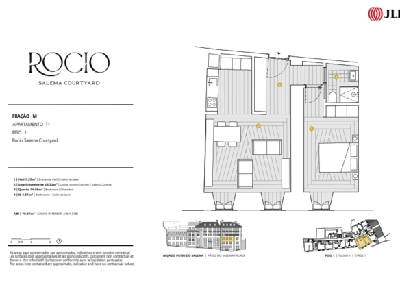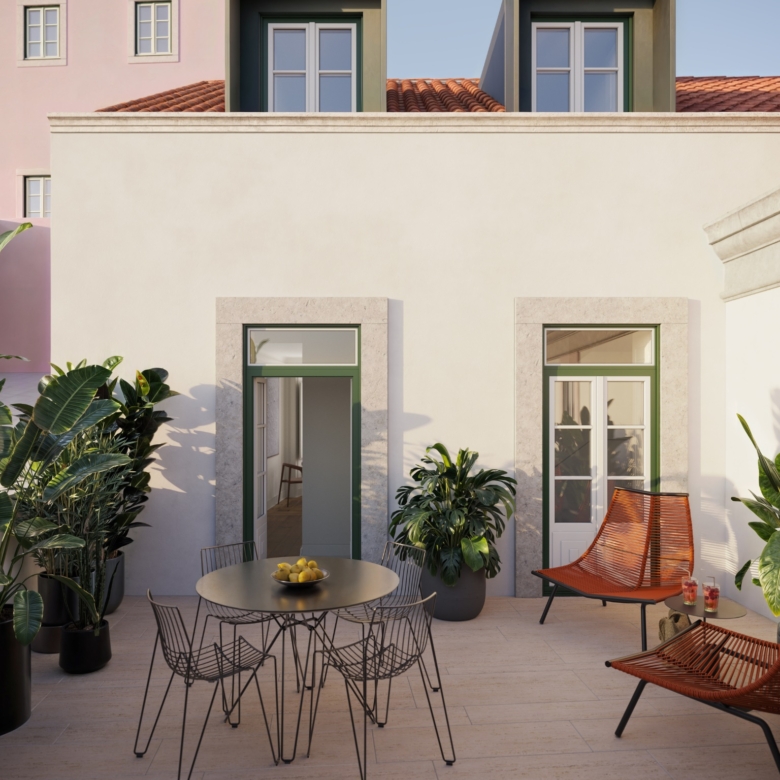 1 Bedroom apartment, new, with 71 sqm (gross floor area), at the Rocio Salema Courtyard project, in Praça do Rossio, Lisbon. The Rocio – Salema Courtyard, a building comprising 36 studio, 1-bedroom, 1-bedroom duplex and 2-bedroom duplex apartments, is located next to one of the most iconic squares in Lisbon, Praça do Rossio.This corner of Lisbon that marvels people from all over the world represents in a perfect manner the intersection between heritage and modernity, which results in a picturesque and welcoming space in the centre of the hustle and bustle of the city. Despite being a rehabilitated building, the Rocio – Salema Courtyard has kept its typical Lisbon structure and the original three storeys, overlooking the river. The Rocio is the ideal address for those wanting to live or invest in one of the most vibrant cities due to the constant tourism growth. The development is near important monuments of the metropolis, such as the statue of D. Pedro IV, the Teatro D. Maria II and the Coliseu dos Recreios. Next to Praça do Rossio, the building has a privileged location in terms of transport, at a short distance from the underground, bus and the Rossio train station. This is the perfect opportunity for those wanting to be where the action is while having a luxurious haven to call home.