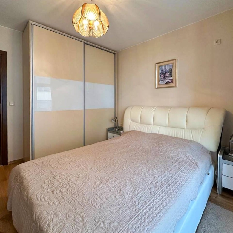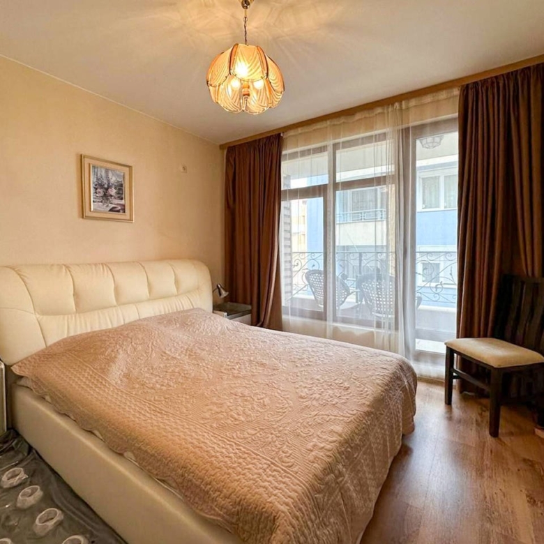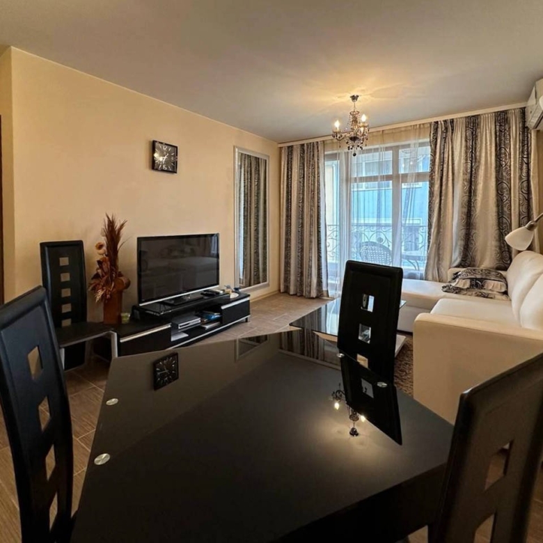 We offer for sale a cozy one-bedroom apartment located on the second floor of the Rich 3 residential complex. The apartment includes an entrance hall, a spacious living room with a kitchen and dining area, a separate bedroom, a bathroom, and a terrace. It features a bright interior and quality renovation. The apartment is fully furnished and equipped with modern household appliances.