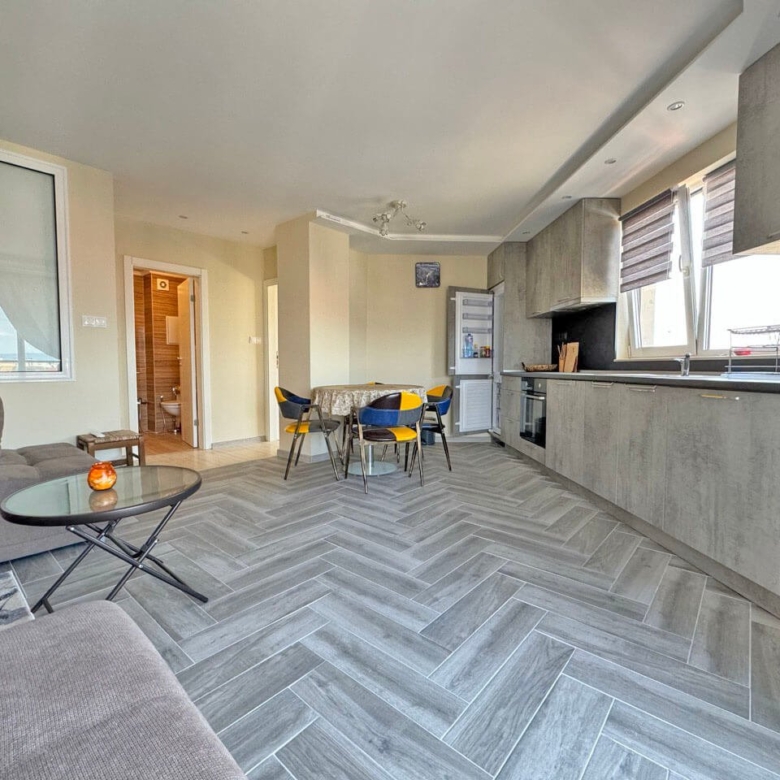 Living Room: Spacious and bright living room with comfortable furniture, including a sofa, coffee table, and flat-screen TV. The space is modernly decorated, providing comfort and coziness.