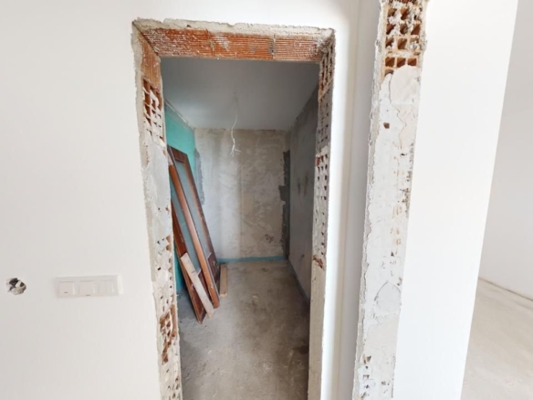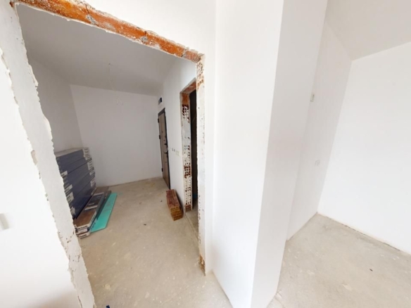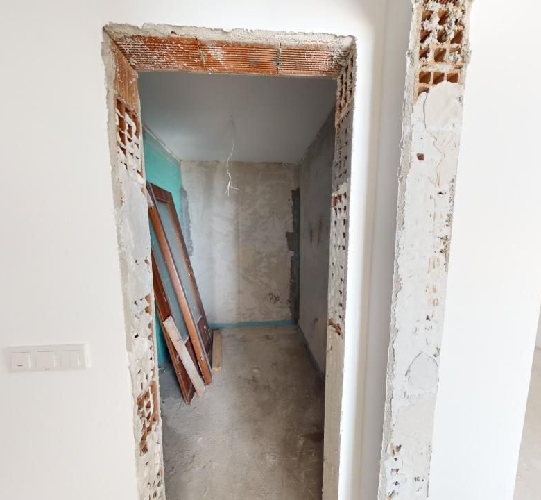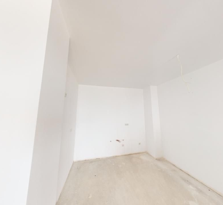 For sale is a 1-bedroom apartment in Villa Metara, which is located right by the beach. The apartment is situated on the second floor. It consists of a corridor, a living room with space for a kitchen, a bedroom, a bathroom, and two terraces—one with sea and pool views and the other with city views. There are triple-glazed windows throughout. It is a turnkey apartment, unfurnished.