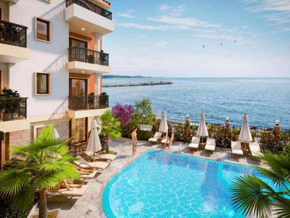 Villa Metara is an exclusive complex consisting of 24 apartments. Its main ideas are to create a cozy atmosphere and provide high-quality construction that meets all European standards. The complex consists of a five-story building with well-maintained green areas and has a beautiful view of the sea. Surrounded by blooming greenery and diverse vegetation, there is a swimming pool for children and adults. The architecture features original facade solutions and luxuriously furnished communal areas. There is an underground garage on the premises of the complex.