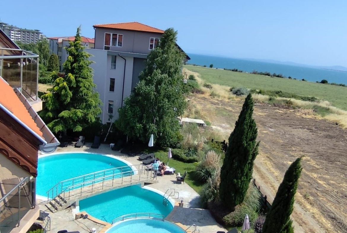 We offer you an attractive 2-room apartment with 58 m² of living space in the popular Sunset Complex in Ravda, Bulgaria. The property is located on the 4th floor (out of 6, with elevator) and impresses with its beautiful sea view.
