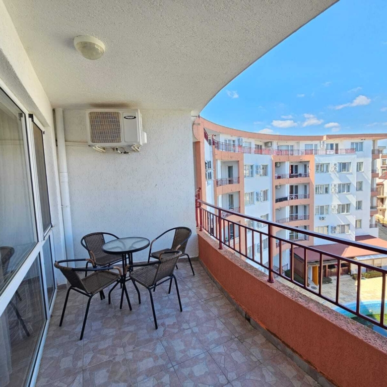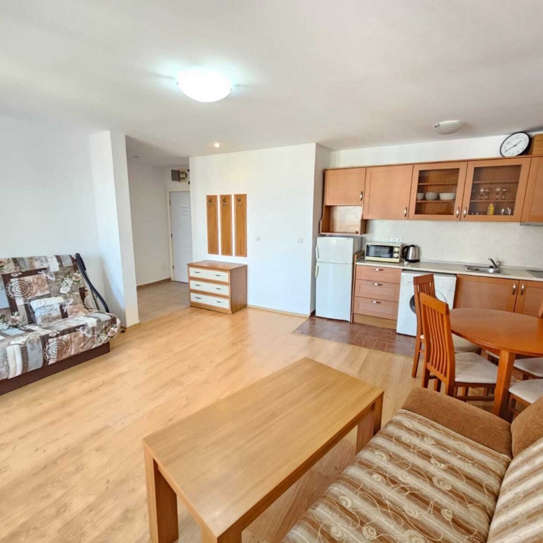 The apartment is located in the popular seaside resort of Ravda, in a well-maintained residential complex directly on the first line to the sea – just a few steps from the sandy beach.