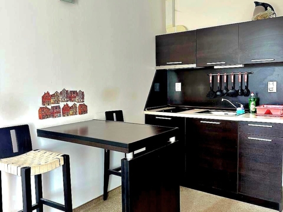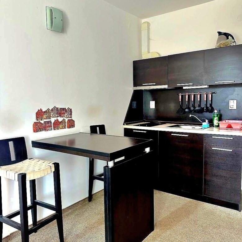 We offer you a comfortable, fully furnished studio apartment with a living area of 43 m² in the popular Atlantis Resort in the Sarafovo district of Burgas for sale. The apartment is located on the ground floor and impresses with its practical layout as well as its location on the second line from the sea.