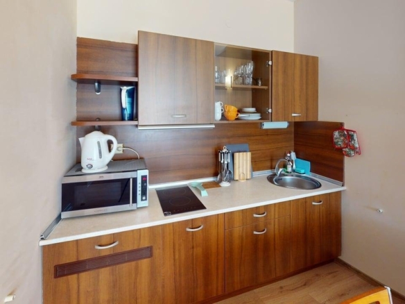 For sale is a spacious 2-room apartment with 67 m² of living space in the elegant Grenada complex in the southern part of Sunny Beach, Bulgaria. The apartment is located on the 3rd floor and is fully furnished – ready for immediate move-in or suitable for rental.