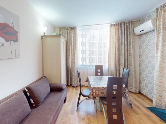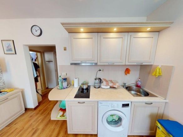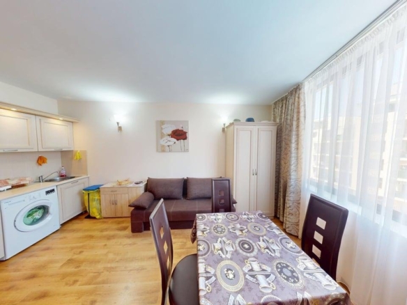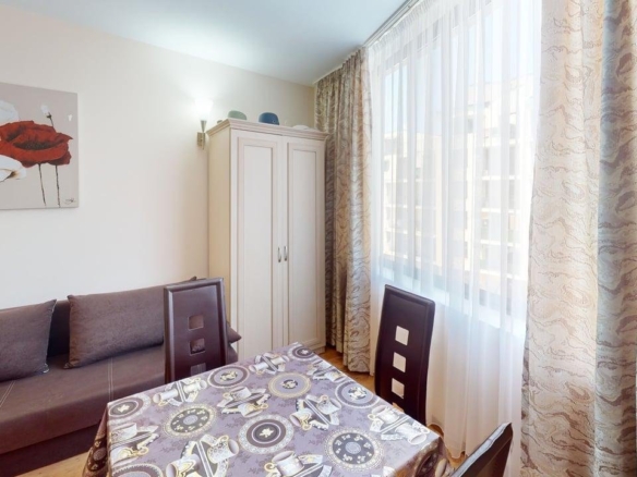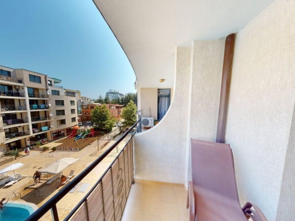For sale is a 63 m² apartment in the popular Avalon complex in the holiday resort of Sunny Beach, Bulgaria. The apartment is located on the 4th floor of a 6-story building with an elevator and is fully furnished – move-in ready for immediate occupancy or rental.