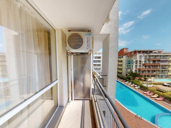 For sale is a spacious and fully furnished 2-room apartment in the popular Sunset Beach 2 complex in Sunny Beach, Bulgaria. The apartment is located on the 4th floor and offers 74 m² of living space, making it a comfortable home or an attractive investment opportunity for rental.