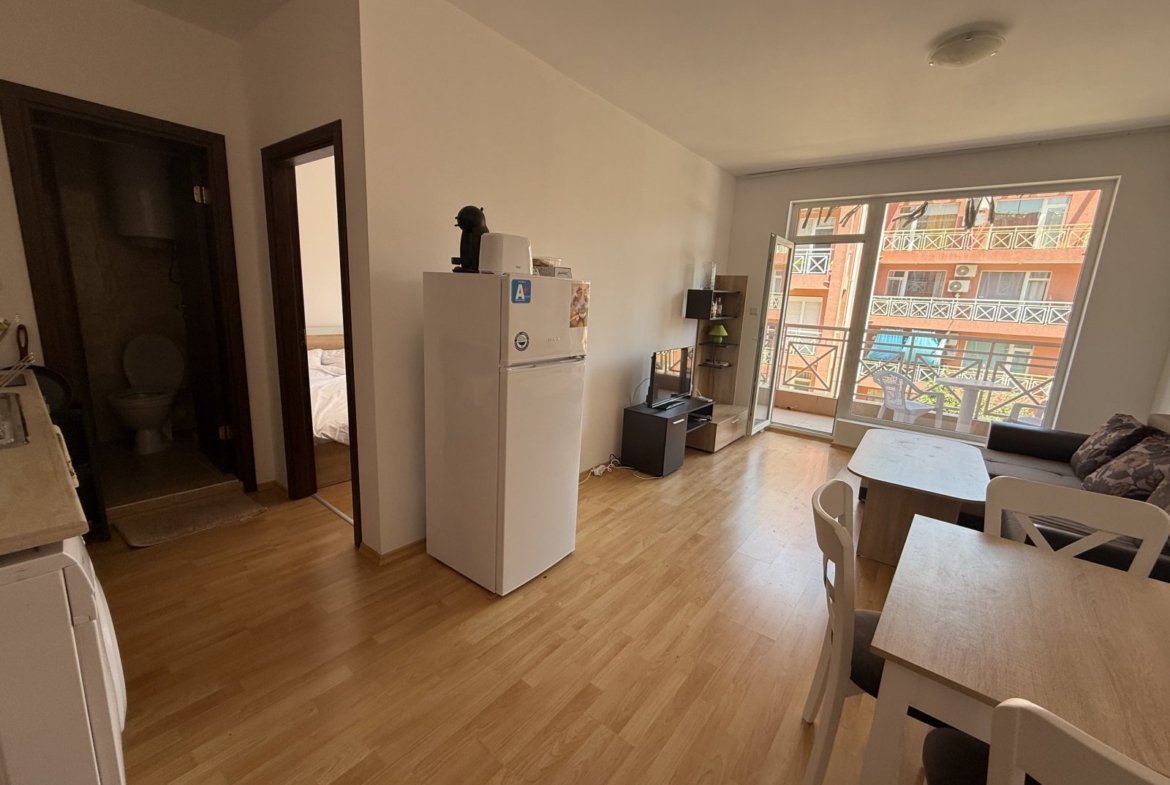 For sale is a spacious and move-in ready two-room apartment in the extensive residential resort Sunny Day 6, approximately 4 km from the fine sandy beach of Sunny Beach. The apartment is located in one of the well-maintained four-story buildings (without an elevator) and features: