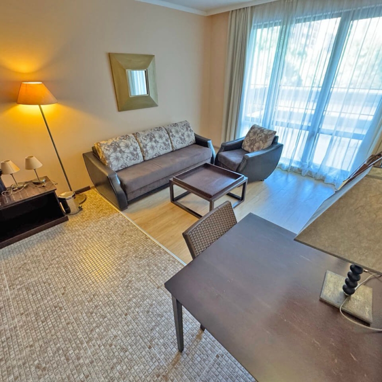 For sale is a stylish and fully furnished two-room apartment in the renowned five-star residential and hotel complex Barcelo Royal Beach, located in the heart of the popular resort of Sunny Beach, just a few steps from the fine sandy beach.