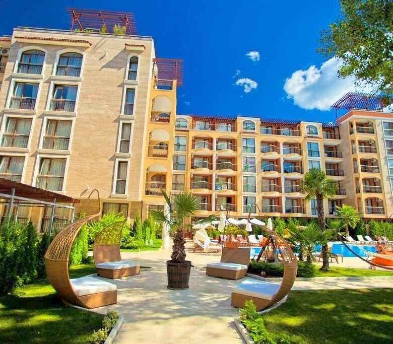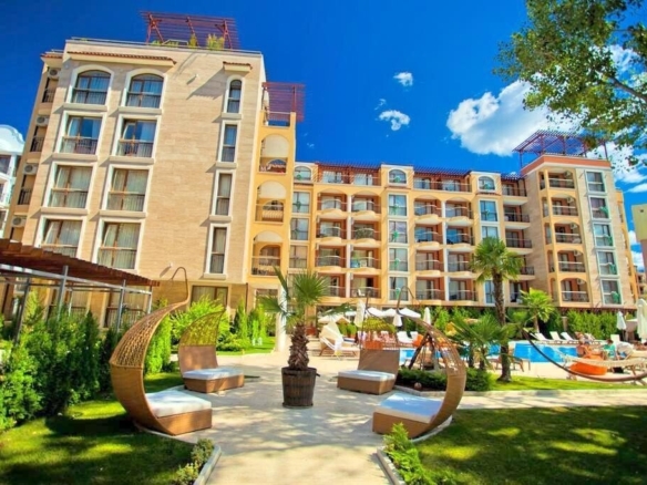 Harmony Suites 1 is part of a prestigious residential complex known for its elegant architecture and tranquil location. It is situated in the western, quieter part of Sunny Beach and offers: