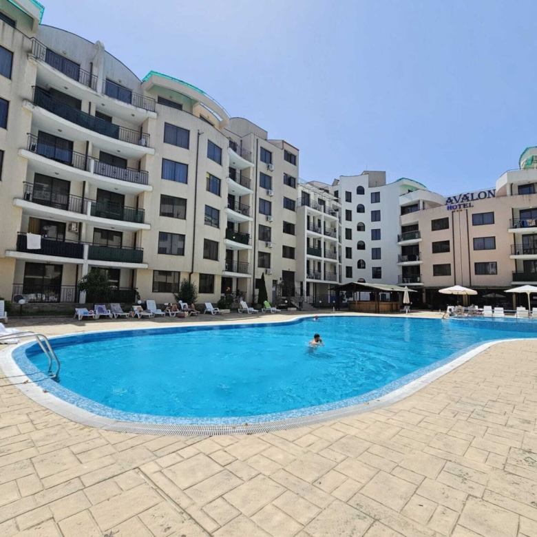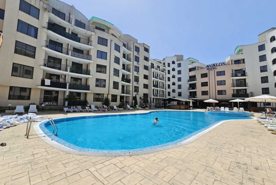 The apartment is located in the gated residential complex “Avalon” in the popular resort of Sunny Beach, just about 500 meters from the beach.