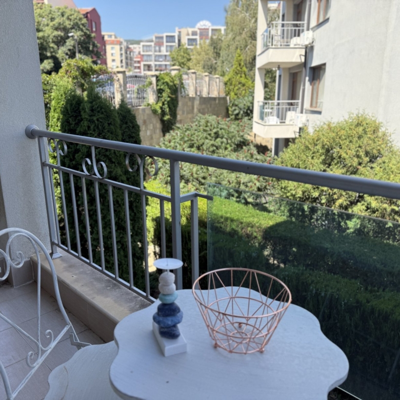 We offer you a cozy 2-room apartment in the popular Sun Wave Complex in Sveti Vlas, Bulgaria. The apartment is located on the 2nd floor of a modern building with an elevator and has a living area of 58 m².