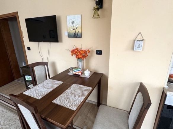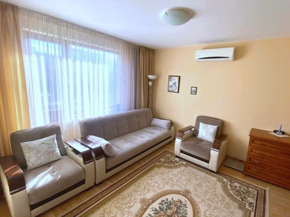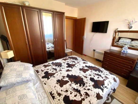 This charming two-room apartment is located in the exclusive Garden of Eden complex in Sveti Vlas, a popular holiday destination on Bulgaria’s beautiful Black Sea coast. The complex is situated right on the beachfront and offers the perfect combination of tranquility and luxury, ideal for a relaxing vacation or year-round living.
