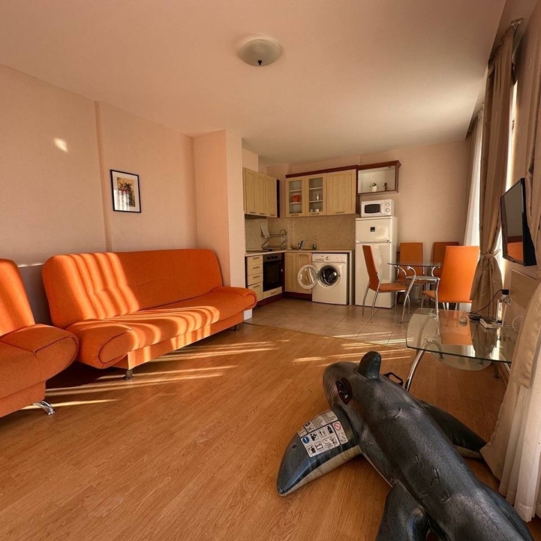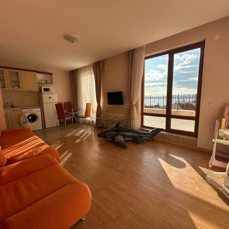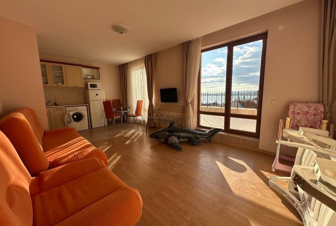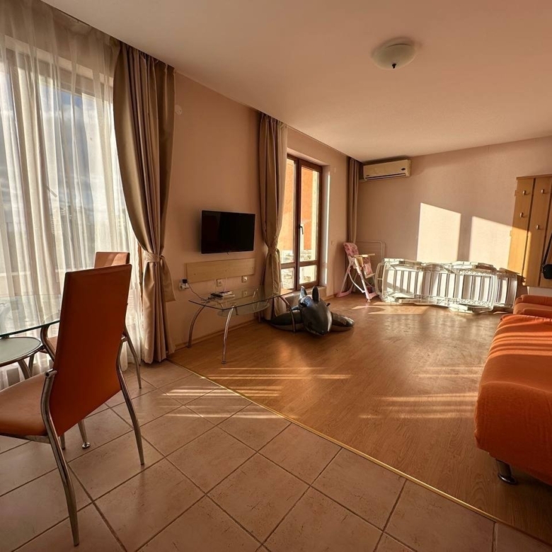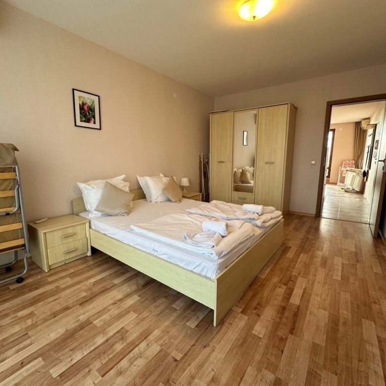 For sale: a spacious 2-room apartment in Prestige Fort Beach, Sveti Vlas, Bulgaria. With an area of 105 m², the apartment is located on the top 5th floor of a modern building with an elevator. This property offers an ideal retreat for those seeking tranquility and comfort in a prime location. The Prestige Fort Beach complex provides a variety of amenities, including a well-kept garden and direct beach access. Perfect for those looking for a luxurious home on the Bulgarian Black Sea coast!
