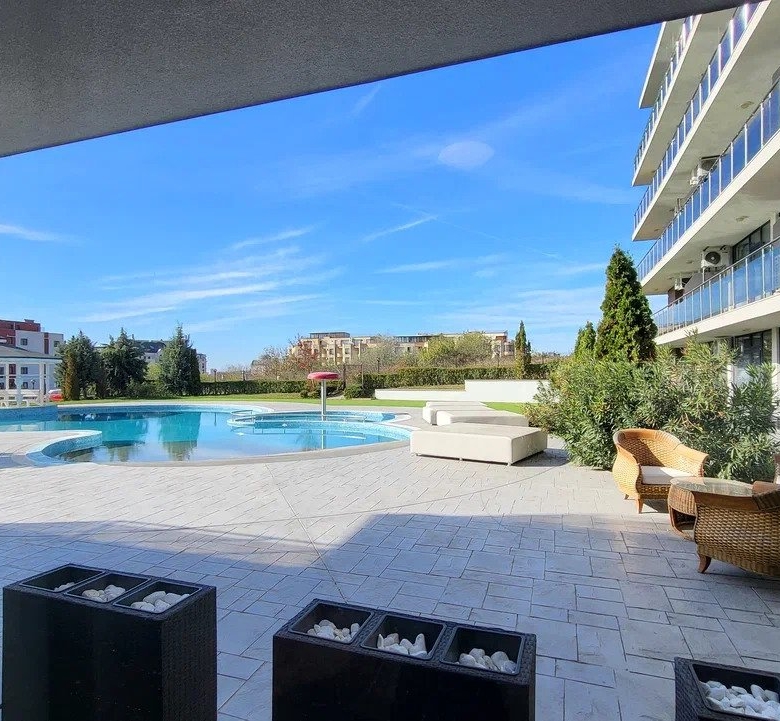 We would like to draw your attention to a beautiful bright studio apartment in the Angelica complex in Sveti Vlas. Nearby, you will find everything you need for year-round living, and at the same time, this property is perfect for summer vacations, as the complex is less than half a kilometer from the sea and features a swimming pool on its premises. The apartment is located on the first floor of a five-story building and consists of:
