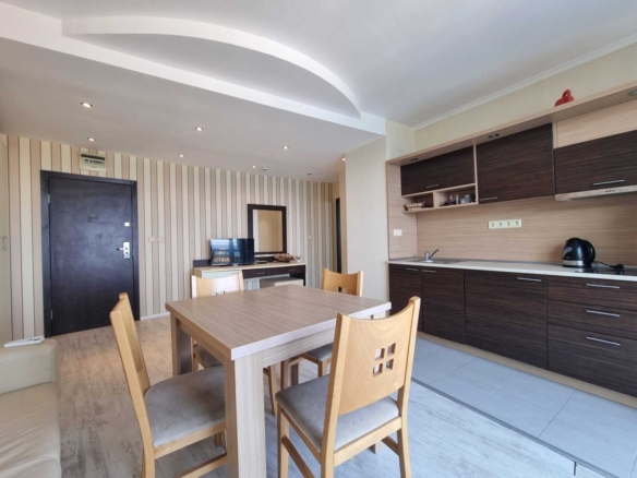 For sale is a spacious and high-quality equipped 2-room apartment in the renowned “Grand Hotel St. Vlas” complex, located in an excellent beachfront position – directly on the first line of the coast and just a few minutes’ walk from the center of the popular holiday destination Sveti Vlas.