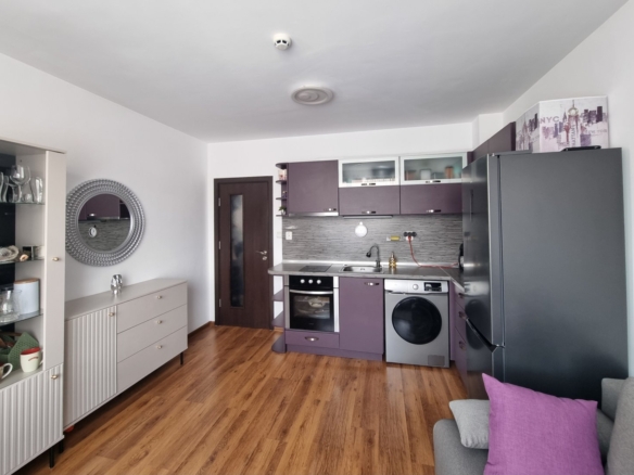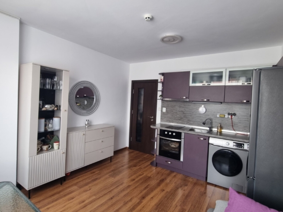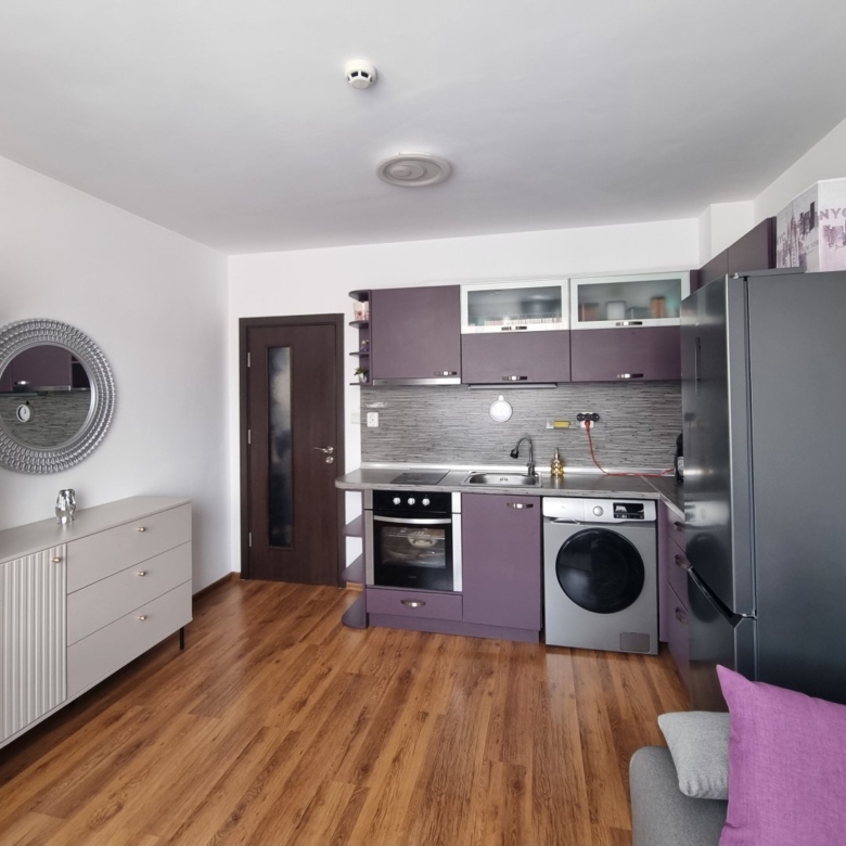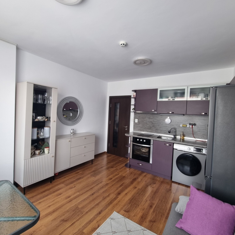 This well-equipped 2-room apartment in the popular complex ”Raduga 1” offers a beautiful mountain view from the 5th floor. With an annual rent of only EUR450 and a purchase price of EUR95,500, it is ideal for a peaceful retreat in Bulgaria. Perfect for permanent residence or as a holiday apartment.