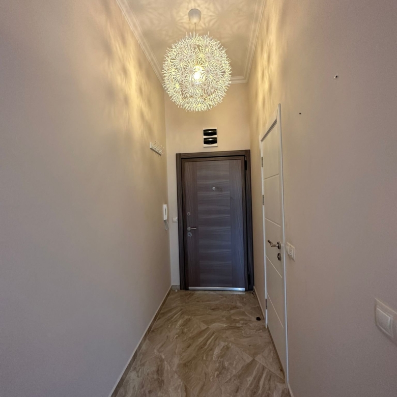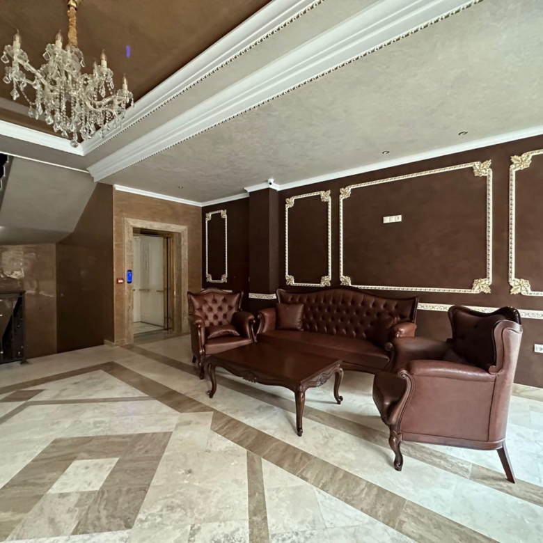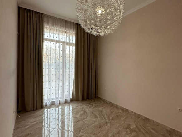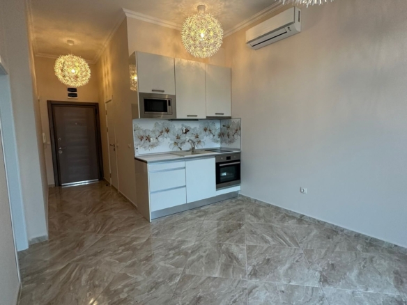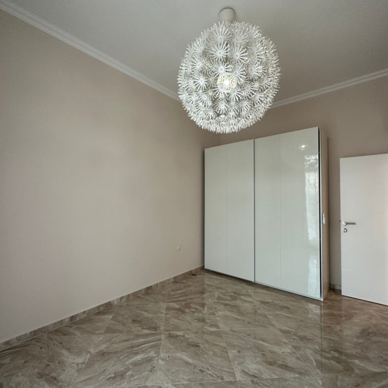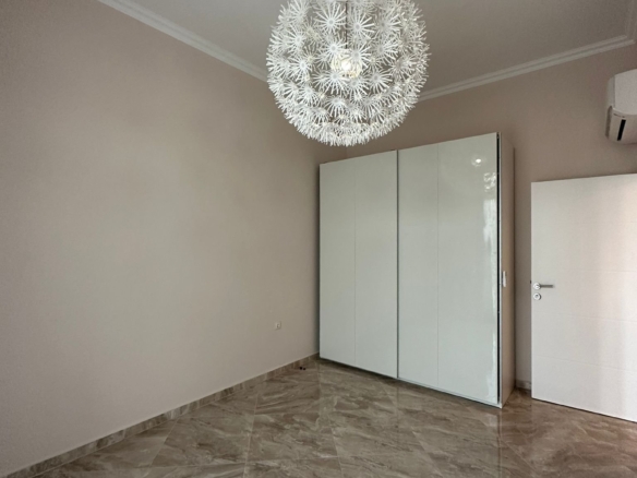 The flooring is fitted with luxurious tiles. The apartment is equipped with a washing machine, a refrigerator, and an oven. All appliances are unused and brand new. The apartment is air-conditioned and ready to be furnished to your liking.