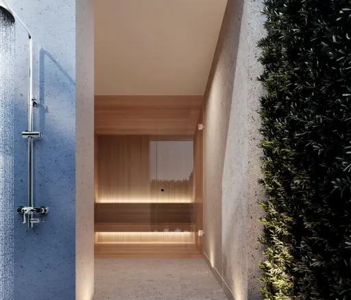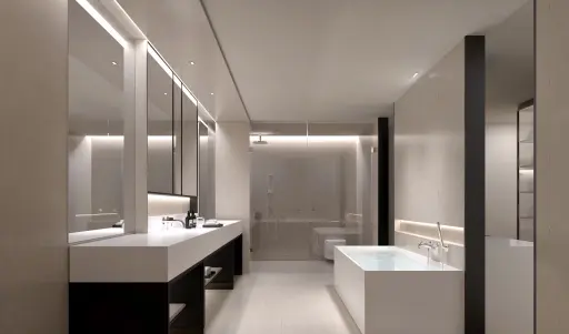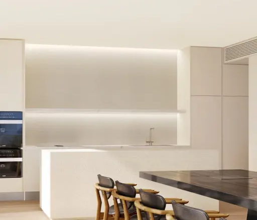 Modern Living with Thoughtful DetailsThis 217 sqm condo offers a really comfortable layout, perfect if you want both space and style. It’s got 2 bedrooms and 3 bathrooms, which is quite generous — especially with features like a freestanding bathtub, double sink vanity, and a walk-in shower all designed with quality materials like textured stone walls and sleek black faucets. You’ll probably appreciate the natural light flooding in through the floor-to-ceiling windows, softened by sheer curtains that keep things bright but private.Living and Kitchen SpaceThe open-concept kitchen and dining area feel welcoming without being overly large. The kitchen stands out with minimalist white cabinetry, under-cabinet lighting, and integrated appliances including an oven and microwave. The island with a sink is a nice touch for casual meals or prepping, and the dark wood dining table with cushioned chairs gives it a cozy yet refined vibe.Being freehold and part of a luxury low-rise project means you get something exclusive. Since it’s offplan, you can choose a bare-shell or fully fitted option depending on how much customization you want. This place feels like it balances everyday practicality with a touch of luxury — whether you plan to live here or use it as a boutique office space.