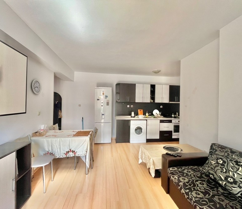 2 BED fully furnished apartment, 73 sq.m., Sunny Day 6, 3 km from the sea coast KC Properties is pleased to offer you this spacious nicely furnished apartment situated in the holiday village Sunny Day 6 in the outskirts of Sunny beach. Sunny Day 6 is a gated complex with 5 outdoor pools, restaurant, supermarket, pool-bar, tennis courts, sport fields, parking, reception, video surveillance and 24/7 security. The complex is located 3 km to the sea coast, 7 km to Nessebar town and 34 km to the nearest International airport in Bourgas. There is regular shuttle service during the summer season connecting the complex with Sunny beach and Nessebar. The apartment which is for sale is situated on the 3rd floor and has a total area of 73 sq.m. It comprises of: – Open-plan kitchen with dining and lounge area; – 2 spacious bedrooms; – terrace; – Bathroom and toilet The apartment is offered stylishly furnished and is ready to use. The property is in excellent livable condition and doesn’t need repair works. Annual maintenance fee – 580 EUR/year.