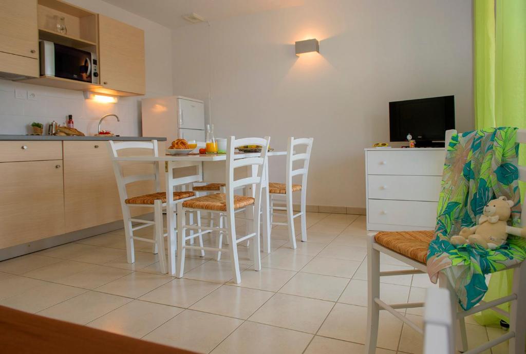 The heart of the home is its open and inviting living area, which seamlessly connects to a fully equipped kitchenette. This space is perfect for preparing meals and enjoying quiet dinners at home. The real standout feature of this property, however, is its direct connection to the outdoors. Each unit has a terrace that overlooks the beautiful communal gardens. The true jewel in the crown is the private entrance, which leads to your very own slice of paradise: a personal pool. This exclusive amenity allows you to enjoy a refreshing swim or simply relax on your sun lounger in complete privacy, all while being just steps away from the expansive golf course. The garden views from the terrace create a picturesque backdrop, making every moment feel like a true escape.