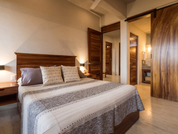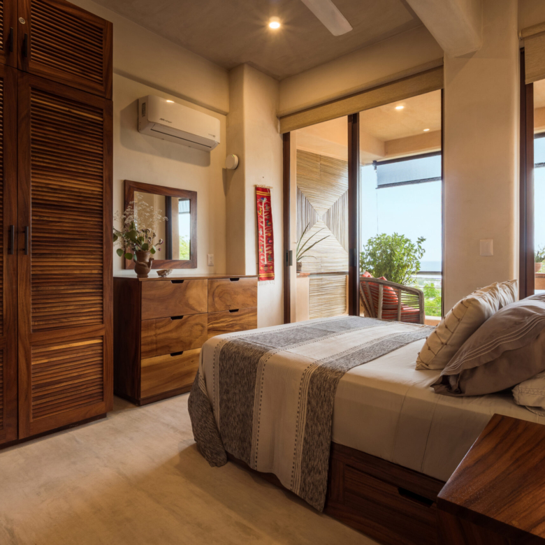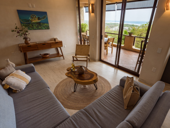 Located in the tranquil residential neighborhood of La Barra, Puerto Escondido. Altavista is an exclusive, low-density complex with common areas including a lobby, swimming pool, and a panoramic, ocean-view rooftop palapa. This beautiful 2-bedroom, 2-bathroom unit situated on the 2nd level spans over 1,087 ft2 of living space. Meticulously crafted finishes, including glazed concrete and locally sourced Huanacaxtle woods, adorn its spaces. The added bonus of a lock-off option enhances its appeal, providing excellent rental potential. Expansive floor-to-ceiling windows in the living rooms and bedrooms create a luminous and open ambiance, ensuring that the breathtaking ocean views are a constant presence. Only 5 minutes from Playa La Barra, one of Puerto Escondido’s most stunning and secluded beaches. Relish in the soothing sounds of the waves crashing, a tranquil backdrop to be enjoyed from your private balcony of this beautiful condo. Don’t miss the chance to discover your perfect blend of sophistication and coastal living, where minimalist design meets the serenity of La Barra.