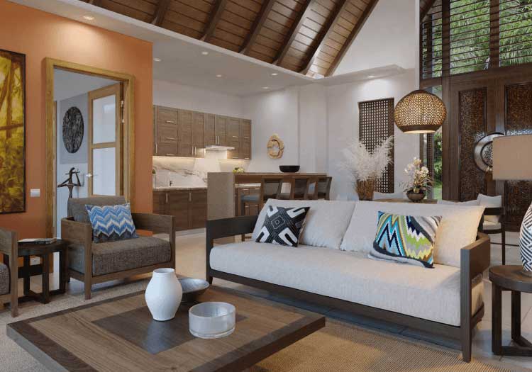 Elegant, Eco-Inspired Interiors• Two tranquil bedrooms featuring high-quality, sustainable finishes• Open-plan layout that seamlessly connects indoor and outdoor spaces• Tastefully furnished with artisanal, locally made pieces and organic textures• Spa-like bathrooms with natural stone accents and eco-luxe details• Energy-efficient lighting, fixtures, and smart storage solutions for everyday ease