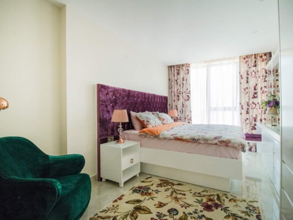 This100 m² apartment features two bedrooms and two bathrooms, both equipped with showers. Located on the 9th floor, it offers an unobstructed sea view that enhances the overall sense of space and openness. T
