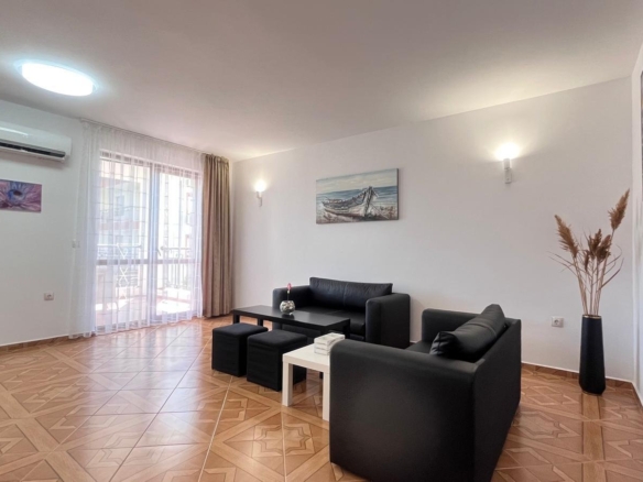 For sale is a modern three-room apartment in the exclusive residential complex “Famagusta” in the quiet coastal town of Aheloy. The apartment is located in a well-maintained building with an elevator and offers a living space with an optimal room layout, making it suitable both for personal use and for rental purposes.