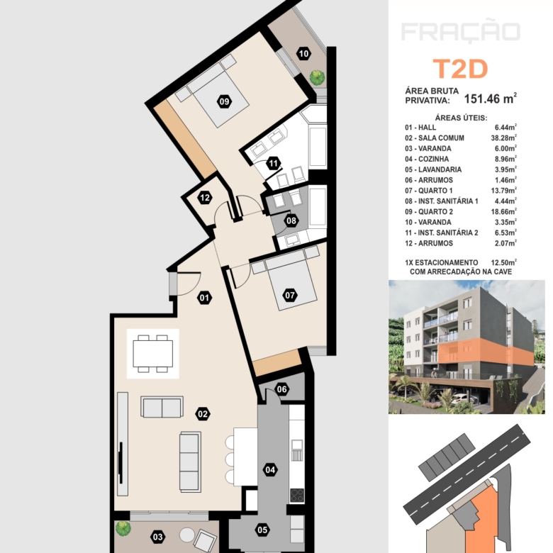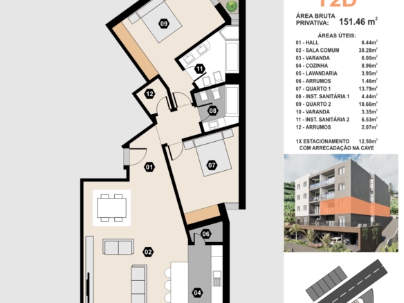 2-bedroom apartment on the 1st floor with 152sqm of total gross area, sea view, and garage parking space, located in an 8-unit block called Edifício Quintinha do Serrado II, situated on Caminho Grande and Sítio das Preces in Câmara de Lobos.The unit consists of 2 bedrooms, balcony, living room and equipped kitchen in open space, garage parking space. Notable features of this property are south orientation and sea view.Located in a quiet and pleasant area with easy access, the apartment is 5 minutes from the expressway access in Santa Rita, 10 minutes from downtown Funchal, 20 minutes from Madeira Cristiano Ronaldo Airport.