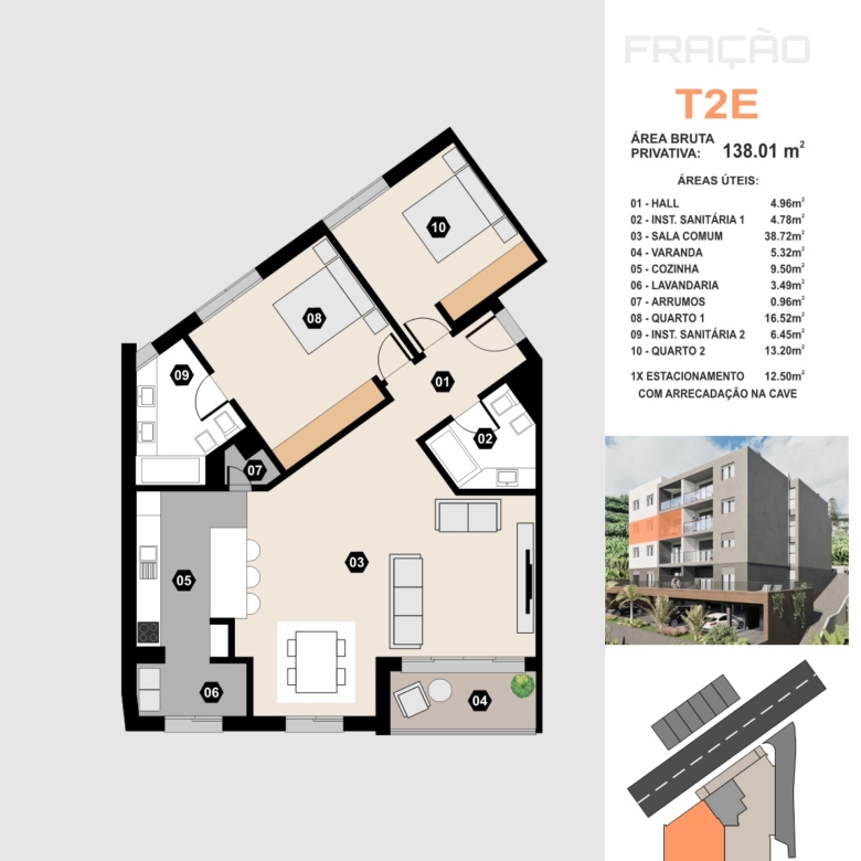 2-bedroom apartment on the 2rd floor with 138 m2 of total gross area, sea view, and garage parking space, located in an 8-unit block called Edifício Quintinha do Serrado II, situated on Caminho Grande and Sítio das Preces in Câmara de Lobos.The unit consists of 2 bedrooms, balcony, living room and equipped kitchen in open space, garage parking space. Notable features of this property are south orientation and sea view.Located in a quiet and pleasant area with easy access, the apartment is 5 minutes from the expressway access in Santa Rita, 10 minutes from downtown Funchal, 20 minutes from Madeira Cristiano Ronaldo Airport.