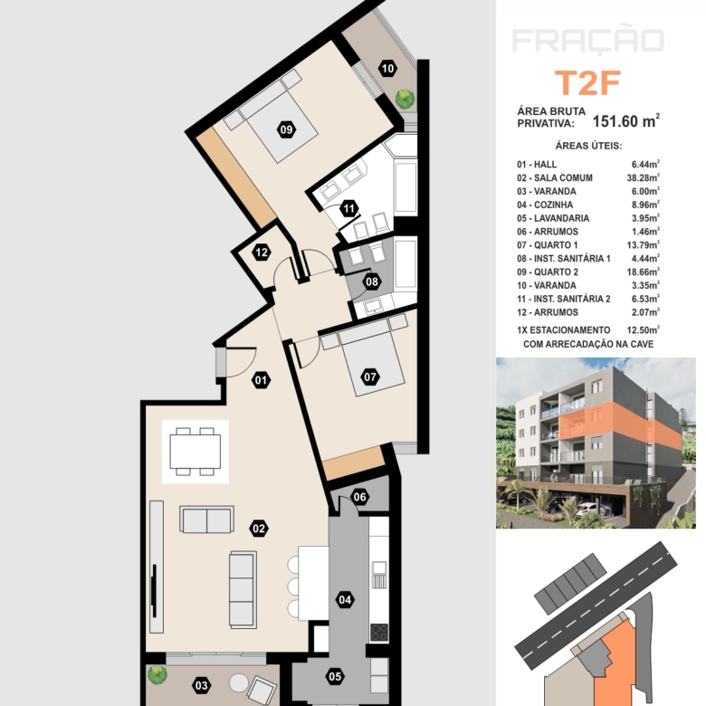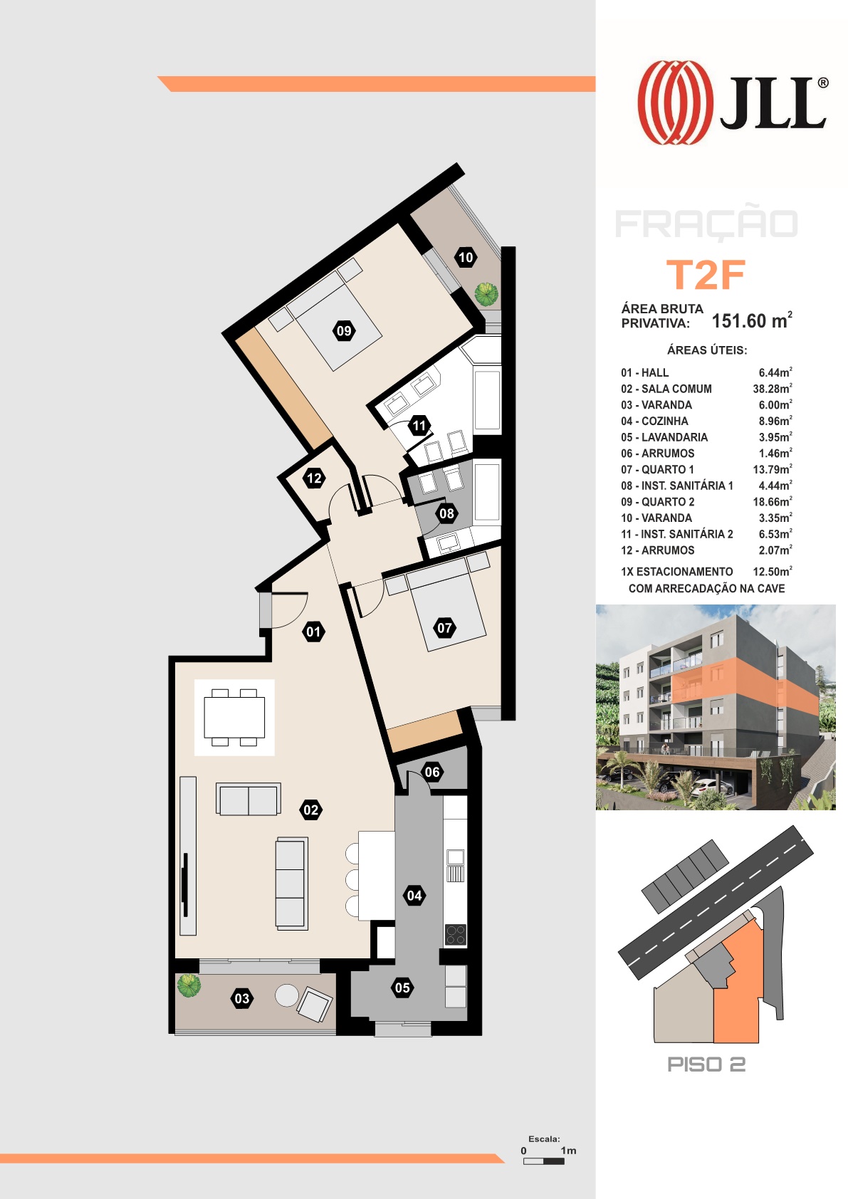2-bedroom apartment on the 2rd floor with 152 sqm of total gross area, sea view, and garage parking space, located in an 8-unit block called Edifício Quintinha do Serrado II, situated on Caminho Grande and Sítio das Preces in Câmara de Lobos.The unit consists of 2 bedrooms, balcony, living room and equipped kitchen in open space, garage parking space. Notable features of this property are south orientation and sea view.Located in a quiet and pleasant area with easy access, the apartment is 5 minutes from the expressway access in Santa Rita, 10 minutes from downtown Funchal, 20 minutes from Madeira Cristiano Ronaldo Airport.