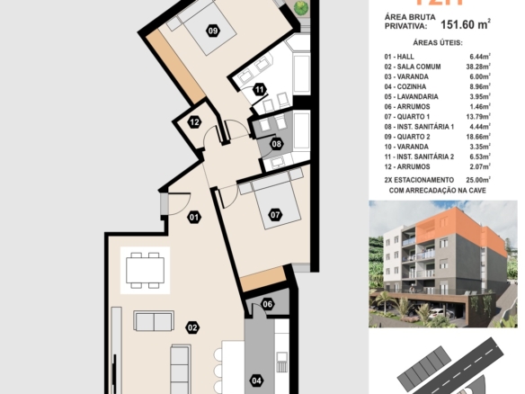 2 bedroom aparment, with 152 m2 of total gross area, with sea view and parking space in garage, inserted in a block of 8 units called Quintinha do Serrado II Building, located on the Grande path and Sítio das Preces in Câmara de Lobos.The unit consists of 2 bedrooms, balcony, living room and equipped kitchen in open space, parking space in garage. Outstanding features of this property are south orientation, sea view.Located in a quiet and mild area of easy access, the flat is 5 minutes from the access to the highway in Santa Rita, 10 minutes from downtown Funchal, 20 minutes from Madeira Cristiano Ronaldo airport.