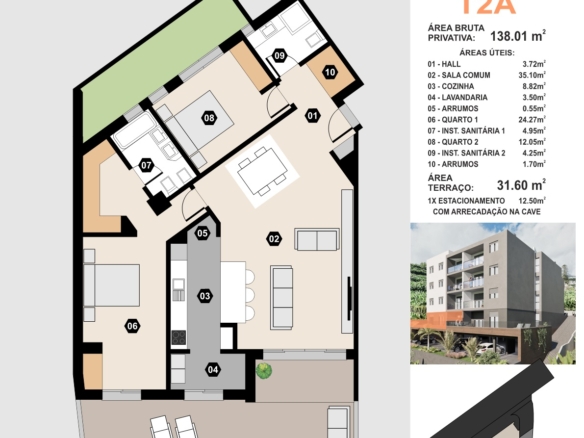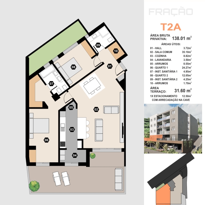 2-bedroom apartmentv with 131 m2 of total gross area, sea view, and garage parking space, located in an 8-unit block called Edifício Quintinha do Serrado II, situated on Caminho Grande and Sítio das Preces in Câmara de Lobos.The unit consists of 2 bedrooms, balcony, living room and equipped kitchen in open space, garage parking space. Notable features of this property are south orientation and sea view.Located in a quiet and pleasant area with easy access, the apartment is 5 minutes from the expressway access in Santa Rita, 10 minutes from downtown Funchal, 20 minutes from Madeira Cristiano Ronaldo Airport.