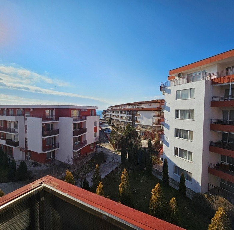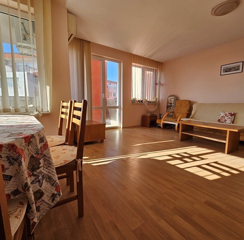 Spacious, fully furnished and equipped resale apartment with two bedrooms on the third floor of the Privilege Fort Beach complex in Elenite, just 150 meters from the quiet Robinson Beach. The total area of the apartment is 124.70 square meters. The apartment is located only 150 meters from the beach.