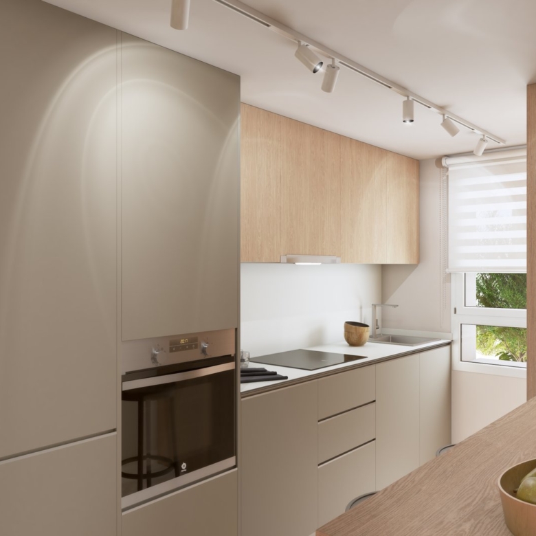 The 2 & 3 bedroom, 2-bathroom apartments boast a spacious living room with integrated kitchen opening onto the terrace which ensures maximum natural light and the sensation of space.