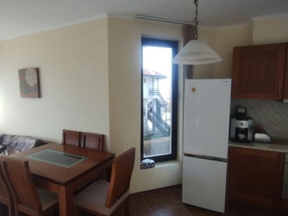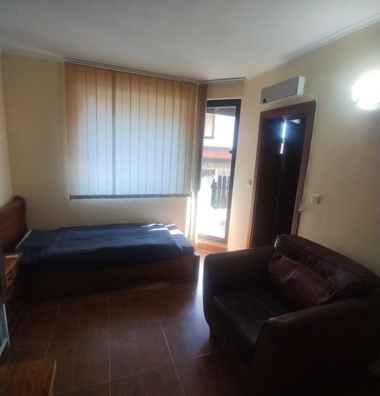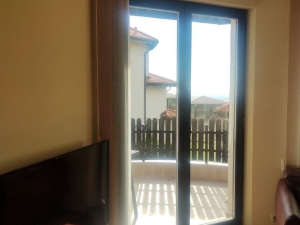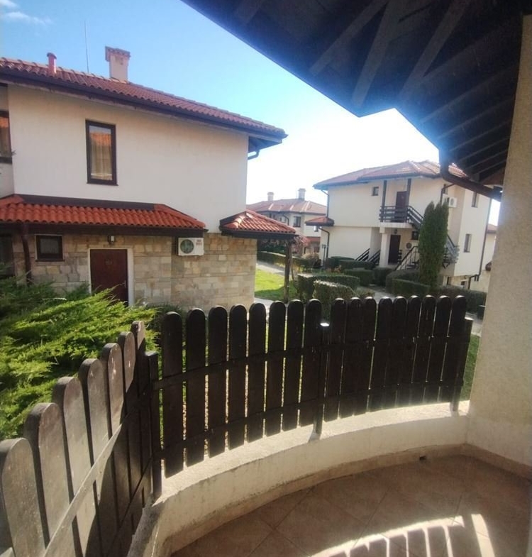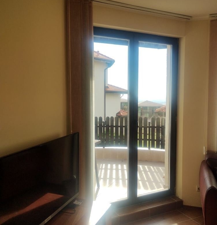 The apartment features an entrance hall, a spacious living room with a kitchen, two cozy bedrooms, and two bathrooms. There are two terraces with stunning views of nature and mountains, and the apartment is sold furnished and ready for immediate occupancy. The complex is located at the foot of the Balkan Mountains, operating year-round, with security and video surveillance. Two swimming pools, a spa center, a restaurant, and a shop are on-site. Surrounded by gardens, it offers excellent conditions for relaxation and tourism.