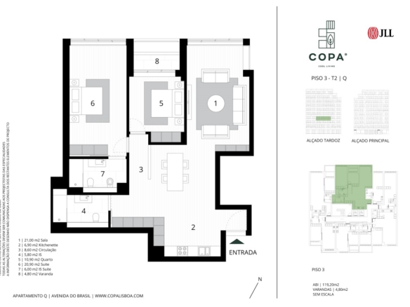 2-bedroom apartment, new, 119 sqm (gross floor area) and 1 parking space, with balcony of 5 sqm, in Lisbon.Alvalade, one of Lisbon’s trendiest neighbourhoods is the location of COPA Cool Living, a nine-storey building divided into 49 units of 1 to 3-bedroom apartments. All the apartments have a special relationship with the exterior, creating a feeling of space without walls, the daily living experience offered by a close-knit neighbourhood. Most of the apartments have access to a balcony, and those on the last floor benefit from private outdoor terraces with swimming pool and dining area.COPA Cool Living offers the most diverse amenities to its residents, from an electric bike park, parking and storage room to a gym and, of course, a shared outdoor garden. This is a new construction project, imbued with symbiosis between sustainability and comfort, ideal for those seeking a fuller life in the city centre. Located on one of the main avenues of the Alvalade neighbourhood, COPA Cool Living is just around the corner from the University Campus, Campo Grande garden, Alvalade Stadium and several iconic sites of the city of Lisbon. So, it is served by an accessible transport network, from the Metro and Carris buses to the modern electric bikes that will take you all over the city. Only five minutes driving distance from Lisbon Airport. This project is for everyone seeking the experience of living in the heart of Lisbon and use of the city parks as their own garden.