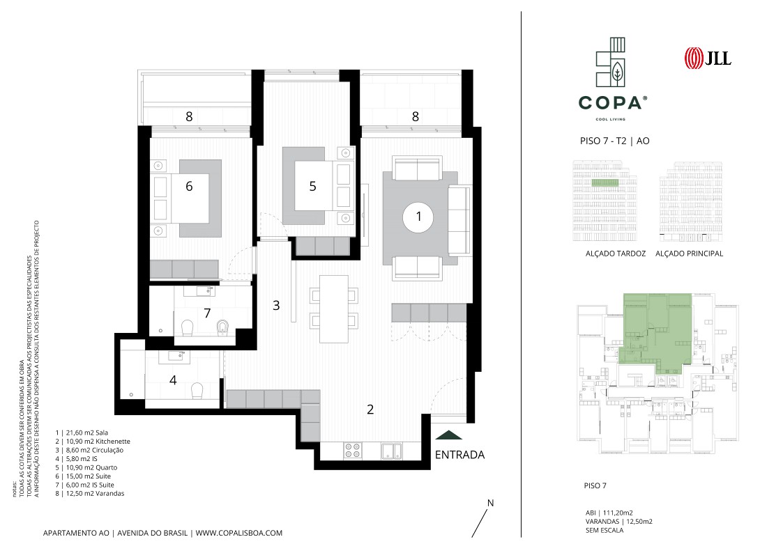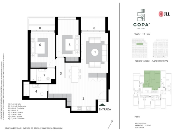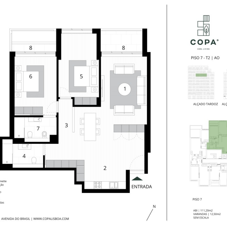 2-bedroom apartment, new, 111 sqm (gross floor area) and 1 parking space, with balcony of 13 sqm, in Lisbon.Alvalade, one of Lisbon’s trendiest neighbourhoods is the location of COPA Cool Living, a nine-storey building divided into 49 units of 1 to 3-bedroom apartments. All the apartments have a special relationship with the exterior, creating a feeling of space without walls, the daily living experience offered by a close-knit neighbourhood. Most of the apartments have access to a balcony, and those on the last floor benefit from private outdoor terraces with swimming pool and dining area.COPA Cool Living offers the most diverse amenities to its residents, from an electric bike park, parking and storage room to a gym and, of course, a shared outdoor garden. This is a new construction project, imbued with symbiosis between sustainability and comfort, ideal for those seeking a fuller life in the city centre. Located on one of the main avenues of the Alvalade neighbourhood, COPA Cool Living is just around the corner from the University Campus, Campo Grande garden, Alvalade Stadium and several iconic sites of the city of Lisbon. So, it is served by an accessible transport network, from the Metro and Carris buses to the modern electric bikes that will take you all over the city. Only five minutes driving distance from Lisbon Airport. This project is for everyone seeking the experience of living in the heart of Lisbon and use of the city parks as their own garden.
