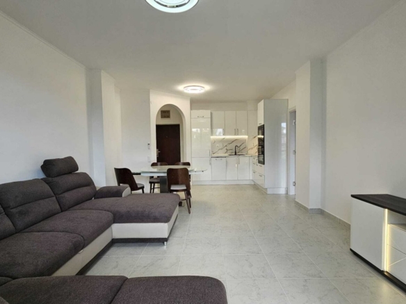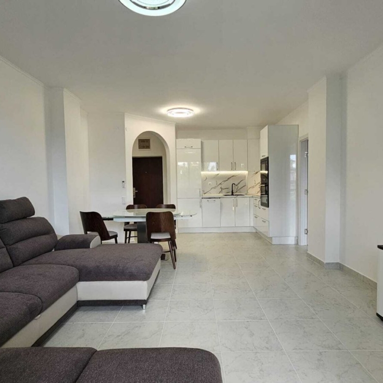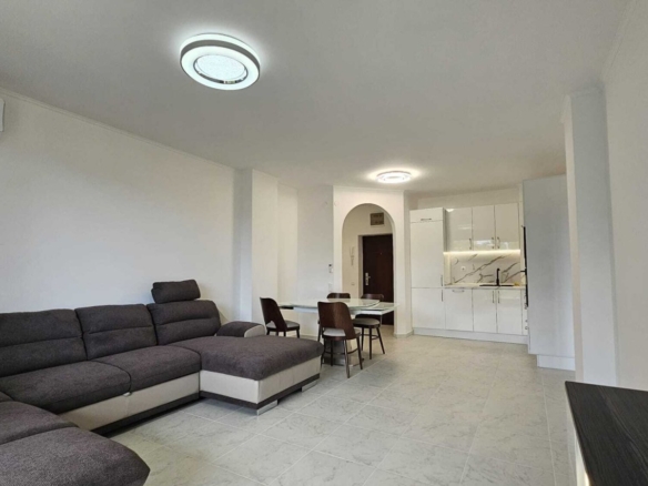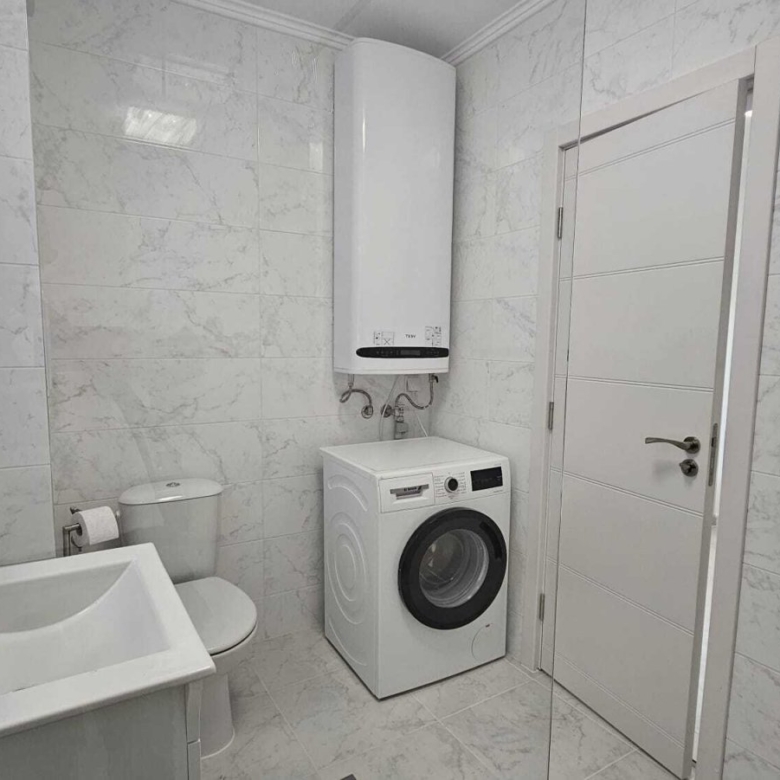 The apartment has an area of 118.5 m² and is located on the third floor. It consists of: an entrance hall, a large living room with a kitchenette and dining area, two bedrooms, two bathrooms with a bathtub and shower, and a terrace with a magnificent view of the greenery of the complex. The apartment is fully furnished with brand new furniture and appliances, and underfloor heating is installed in all rooms!
