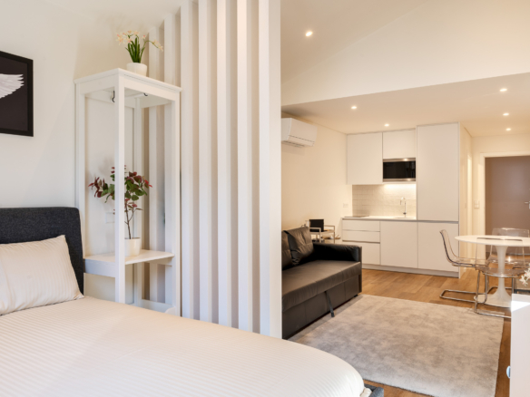Brand new 2-bedroom (T1+T0) apartment, with 80 sqm of gross private area in Marquesa Palace residential building, in the historic centre of downtown Porto. All apartments include air-conditioning, double glass windows, fully equipped kitchens and may come fully furnished. The units feature large areas, plenty of natural light and a modern and functional design to meet the needs and comfort of a cosmopolitan and sophisticated life. Most apartments offer fantastic views over the iconic city of Porto.Resulting from a rehabilitation project of a historical building, Marquesa Palace, whose name pays tribute to its past as it was once the home of noble families and formerly known as “Paço da Marquesa”, aims to perpetuate the urban architecture of the 15th century, by maintaining the original characteristics of the property. The use of premium materials and finishings add it comfort, modernity and charm. Most units have a lockoff concept, in which the client acquires a unit composed of two apartments.Located in downtown Porto, near the emblematic São Bento Railway Station and the D. Luís Bridge, the Marquesa Palace building embraces the dynamics of the historic city centre, a UNESCO World Heritage Site, with all main Porto’s attractions within walking distance. This privileged location benefits from a wide range of services, local shops, and cultural facilities, as well as an efficient transport network and quick access to the entire city.Impacto Capital, an international investment company, owner of the Marquesa Palace building and the project promoter, will provide the option of management services. This management comes with the possibility of a fixed return and the management company may be responsible for all the expenses, including maintenance, condominium, internet, water, electricity and insurance, among others.
