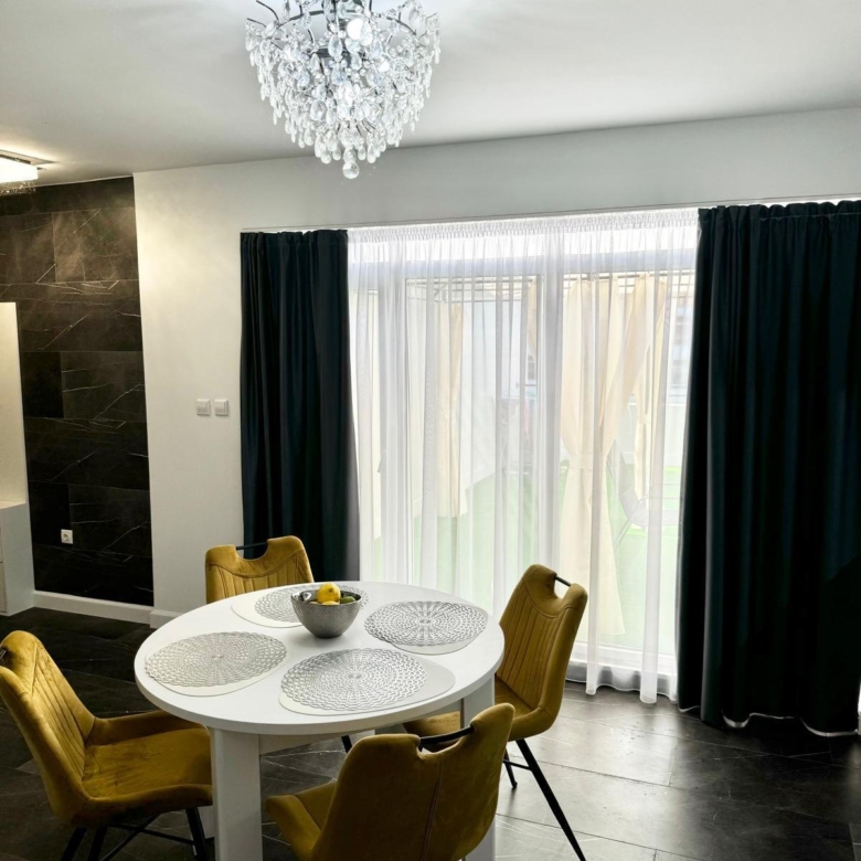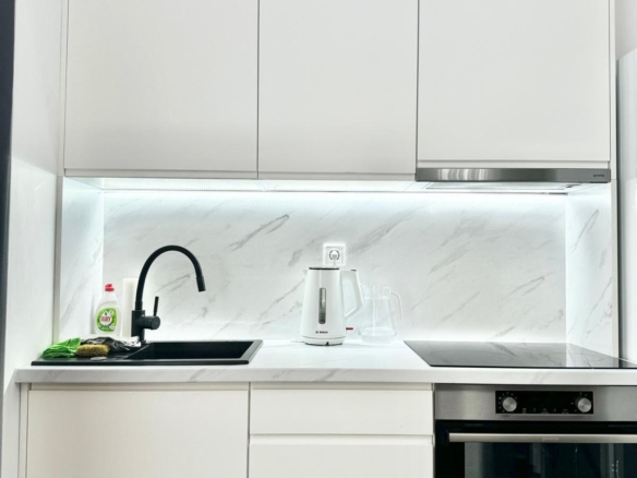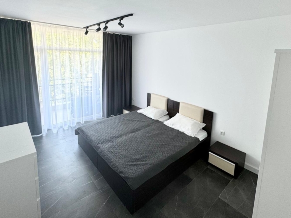 A stylish and spacious three-room apartment is for sale in the Grand Kamelia complex at Sunny Beach resort. The apartment is in excellent condition, recently renovated, and furnished. The complex offers many amenities, such as swimming pools, a restaurant, and a gym.